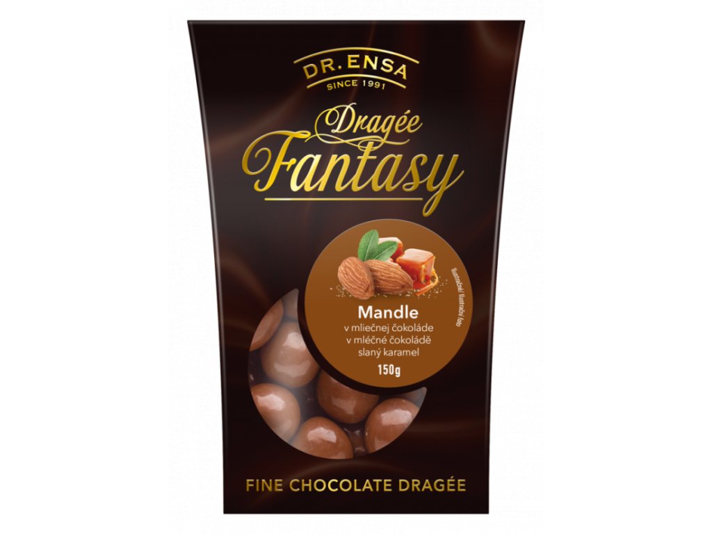 F.Dragee mandle v mliečnej čokoláde slaný karamel 150g